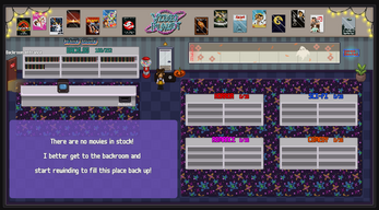 - Keep your Movie shelves full in the Storefront by going into the Backroom to Rewind the various Movie VHS tapes in your Backlog
